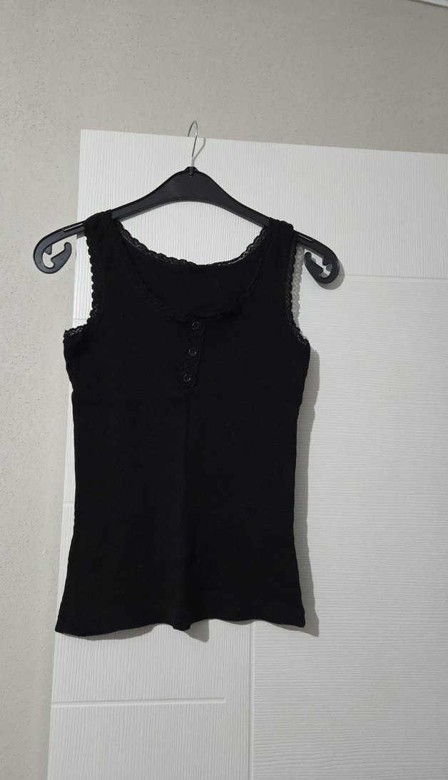 Siyah Düğmeli V Yaka Kolsuz Bluz