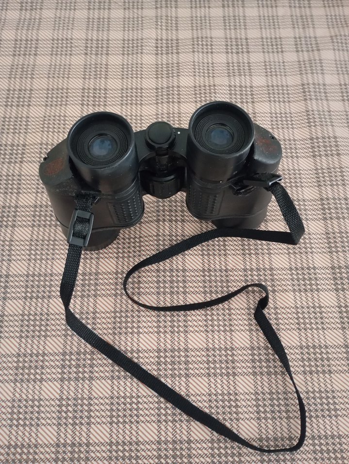 Ayarlanabilir merkezi netleme ve taşıma kayışı bulunan siyah dürbün. Açık hava kullanımı için uygundur.