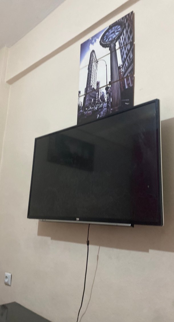 Siyah renkli, duvara monte edilmiş ince tasarımlı monitör. Kablo aşağıda asılı durumda. Alan tasarrufu sağlar. ️herhangi bir sorunu yoktur çizik dahi yok temiz kullanılmıştır 109 ekran