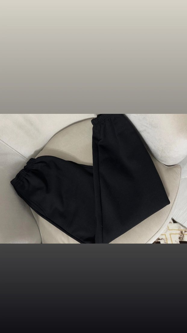 Düz siyah renkte, elastik bel bantlı, üç iplik yeni eşofman altı