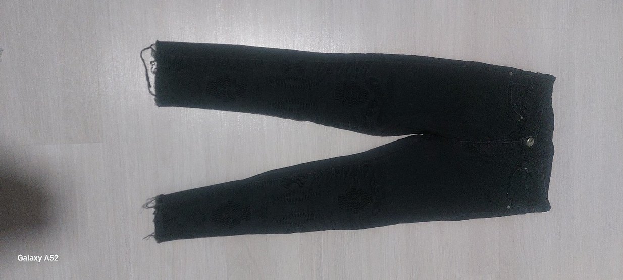 Siyah renkli, düz ve elastik yapılı kadın jean.Orta boy uzunlukta, günlük kullanıma uygun goth tarzında ve sıkı kesimdir. desen vardır
