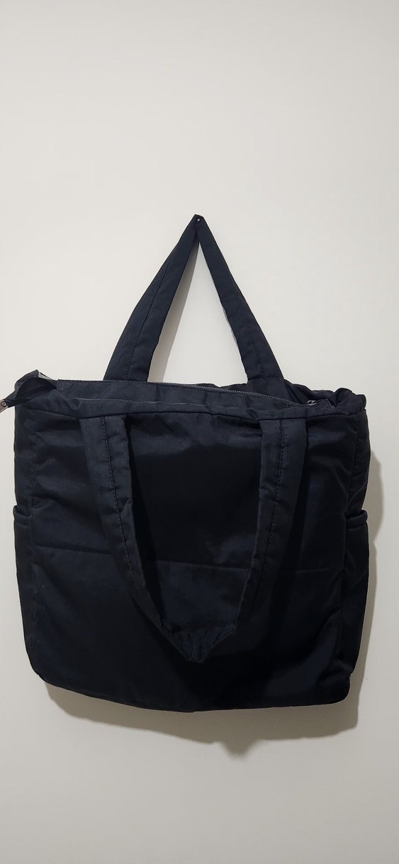 Düz siyah renkte, sağlam saplı spor kol çantasıdır.