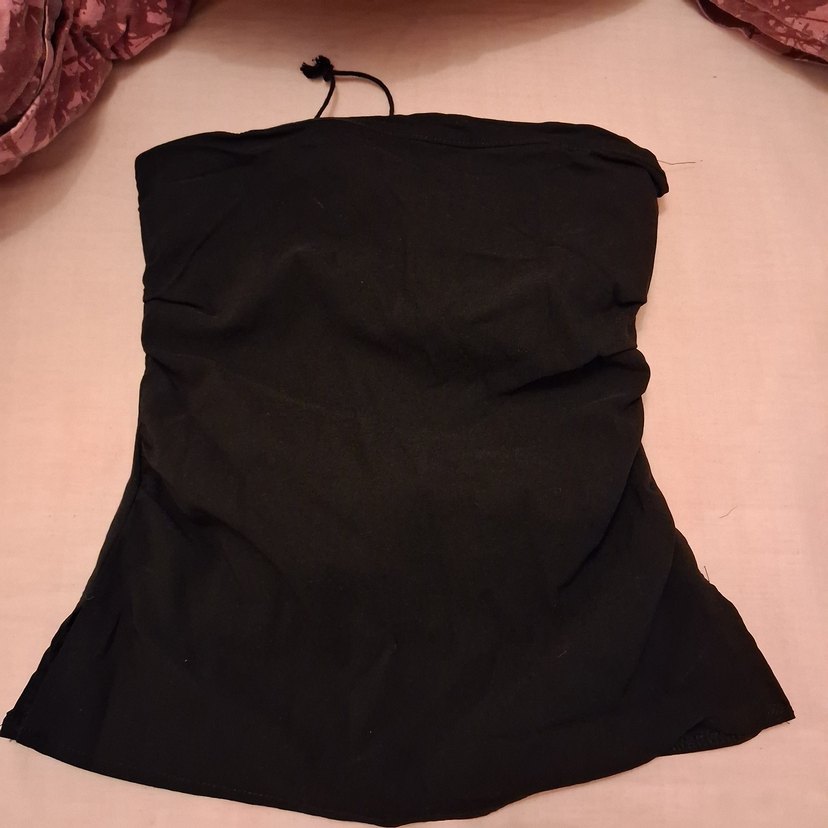 Düz siyah, midi uzunlukta, vücuda oturan hemşire korsesi. Koyu tonlu ve desen içermeyen sade tasarım.