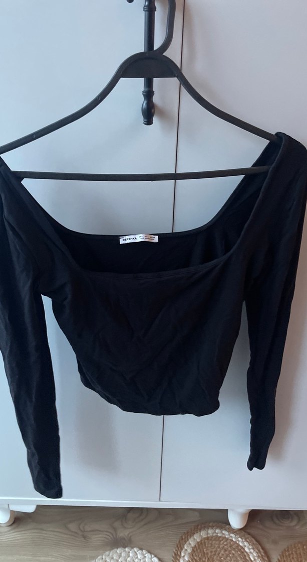 Siyah, tek renk, uzun kollu ve tekne yaka olan bu dar kesim bluz, düz ve sentetik kumaştan üretilmiştir. Minimalist ve şık sokak stili için uygundur.