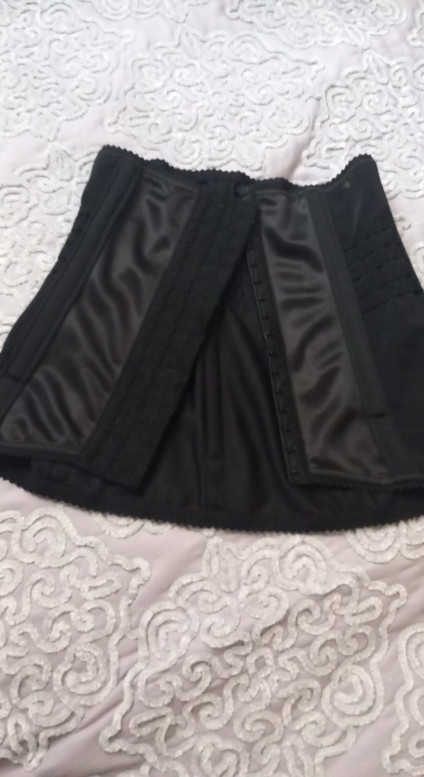 Siyah renkte, midi boyda ve düz kumaştan yapılmış, vücuda oturan hemşire korsesi. Kanca kapamalı, destekleyici yapıya sahiptir.
