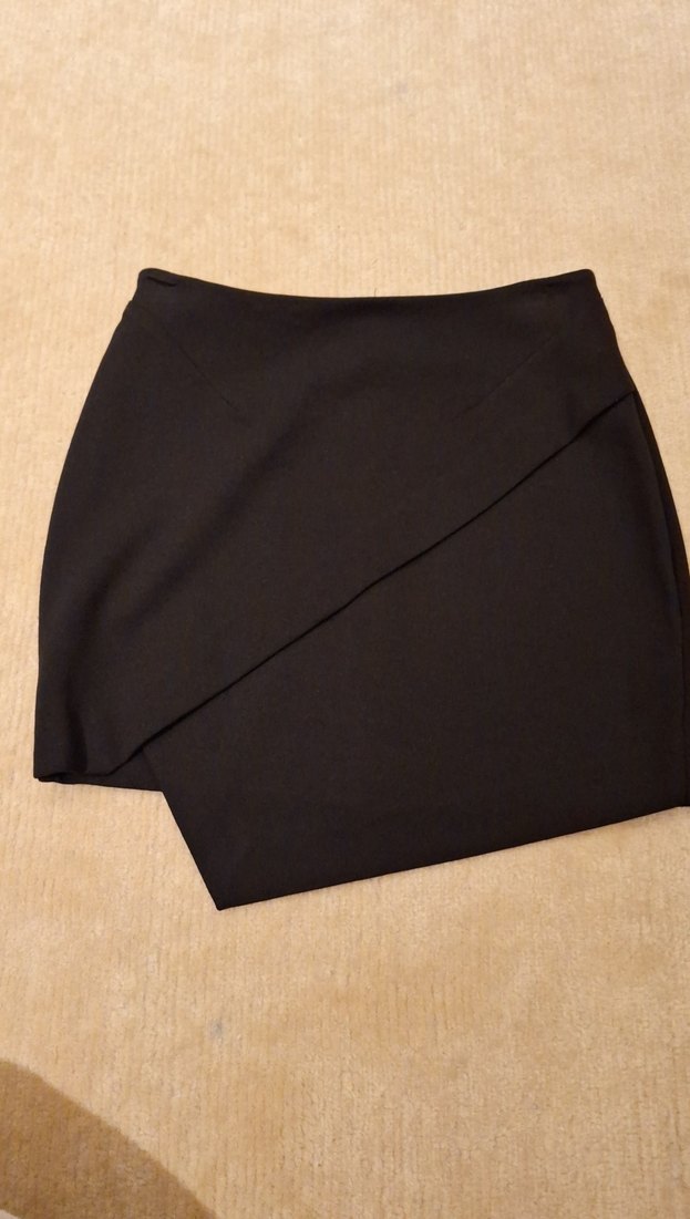 Düz, siyah ve kısa kesim bu mini etek, düz sentetik kumaştan yapılmıştır ve romantik akşamlar için zahmetsiz şıklık sunar.