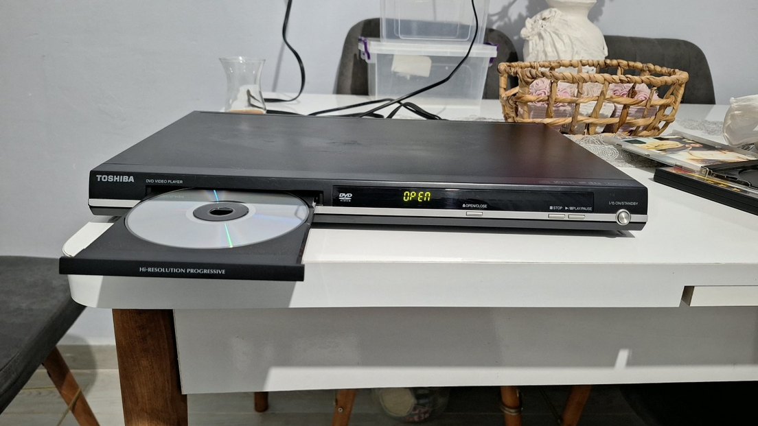 Siyah renkli DVD tarayıcı, açık tepsi ve optik karakter tanıma (OCR) özelliğine sahip. DVD tarama ve oynatma için kullanılır. cihaz çalışıyor dönüyor ,ekrana yansıtıyor cd taktım CD mi bozuktu ben mi çalıştıramadım anlayamadım çalıştıramadım Velhasıl