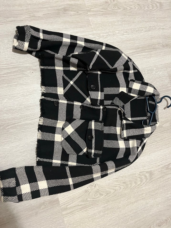 Siyah Ekose Düğmeli Salaş Kadın crop ceket