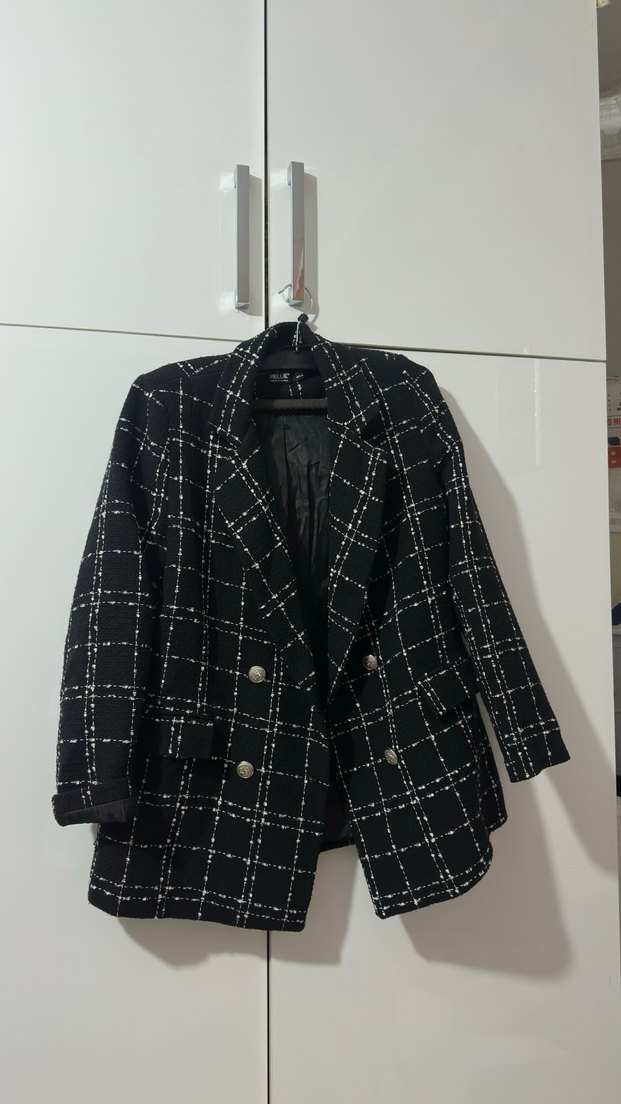 Siyah Ekose Kadın Blazer