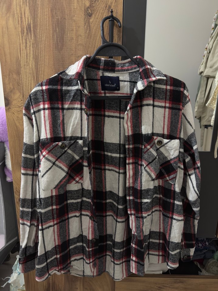 ekose desenli, pamuklu kumaştan, uzun kollu ve düğmeli gömlek hiçbir sorunu yoktur yalnizca bir kez giyildi bedeni olmadığı için satista