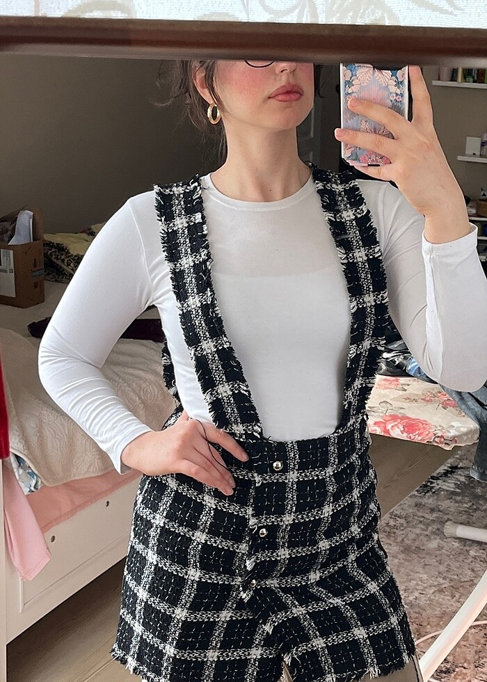 siyah ekoseli salopet