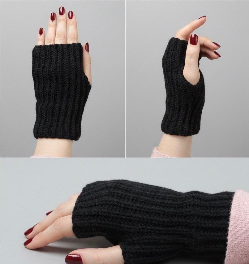 Siyah El Örgüsü Yarım Parmaksız Kadın Eldiveni
