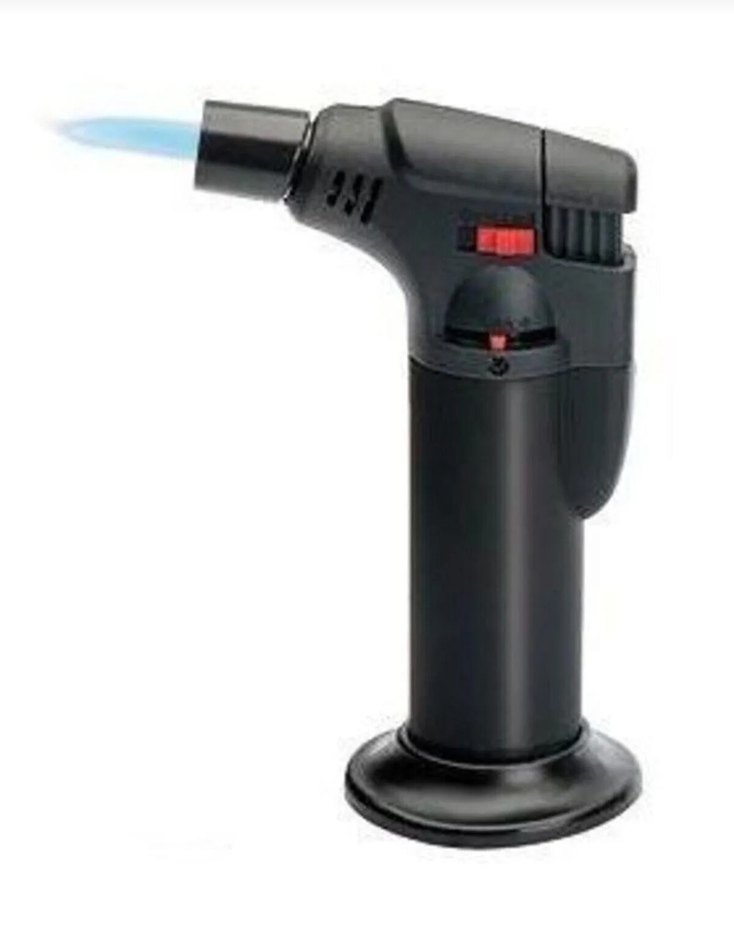 Ayarlanabilir alev ve ergonomik tutuşa sahip siyah el tipi alevli torch çakmak.