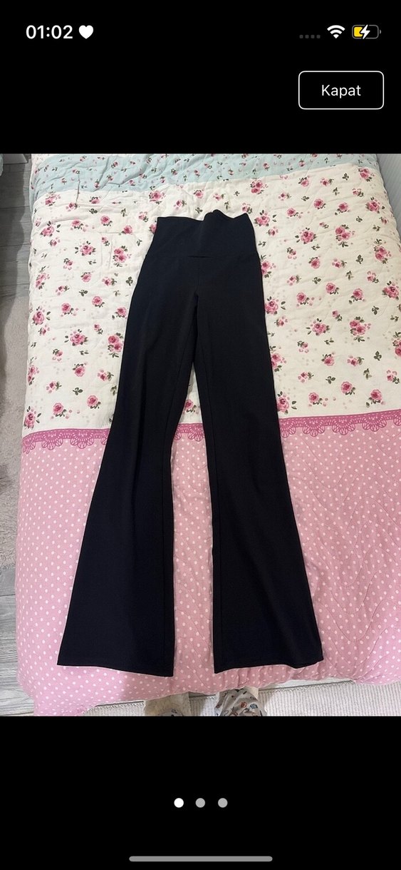 Yumuşak sentetik kumaştan, elastik bel bantlı siyah, normal boy, vücuda oturan ispanyol tayt Günlük rahatlık için uygundur.