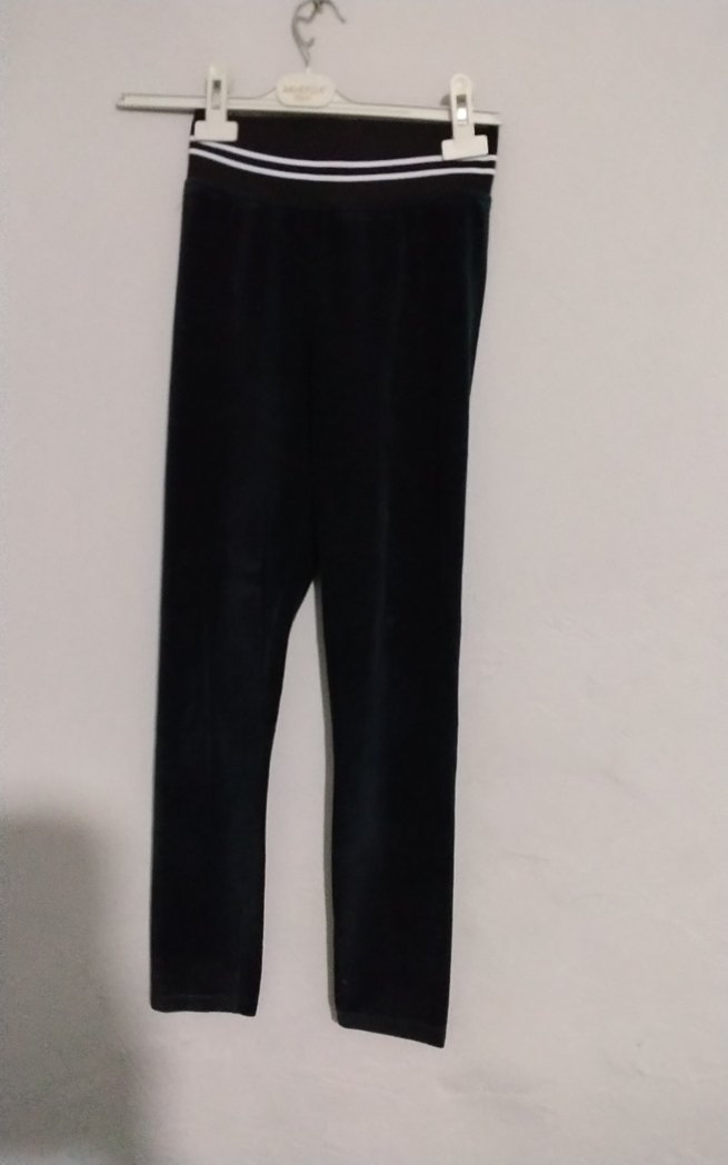 Siyah elastik bel bantlı, yumuşak ve sıcak kumaştan yapılmış, spor ve günlük sokak stiline uygun kadın tayt.