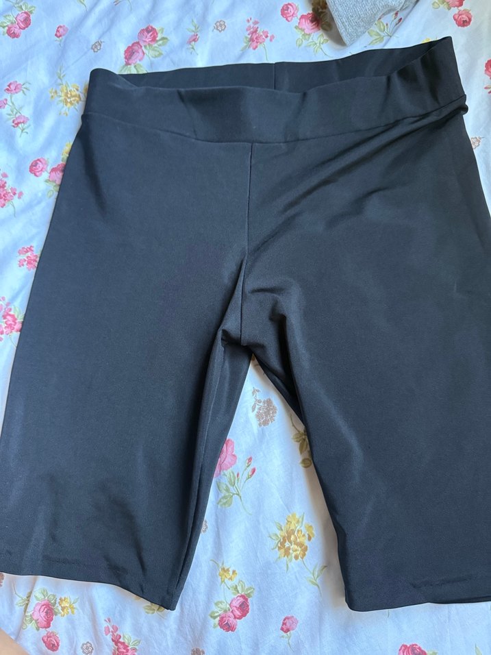 Yumuşak sentetik kumaştan, elastik bel bandına sahip siyah, normal boy, dar kesim şort.Spor ve sokak tarzı için uygundur.