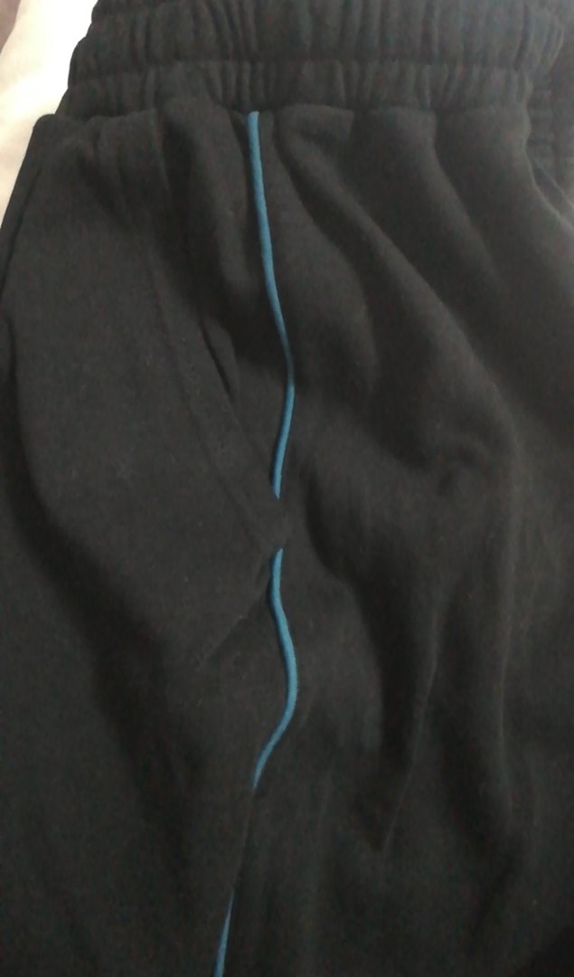 Siyah renkli, elastik bel bantlı, rahat kesim erkek eşofman altı. Yumuşak ve sıcak kumaştan, spor ve günlük sokak stili için uygundur. Yyanlar mavi biyeli