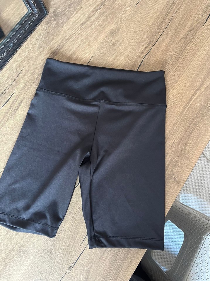 Siyah, elastik belli oysho şort. Spor ve sokak tarzına uygundur.