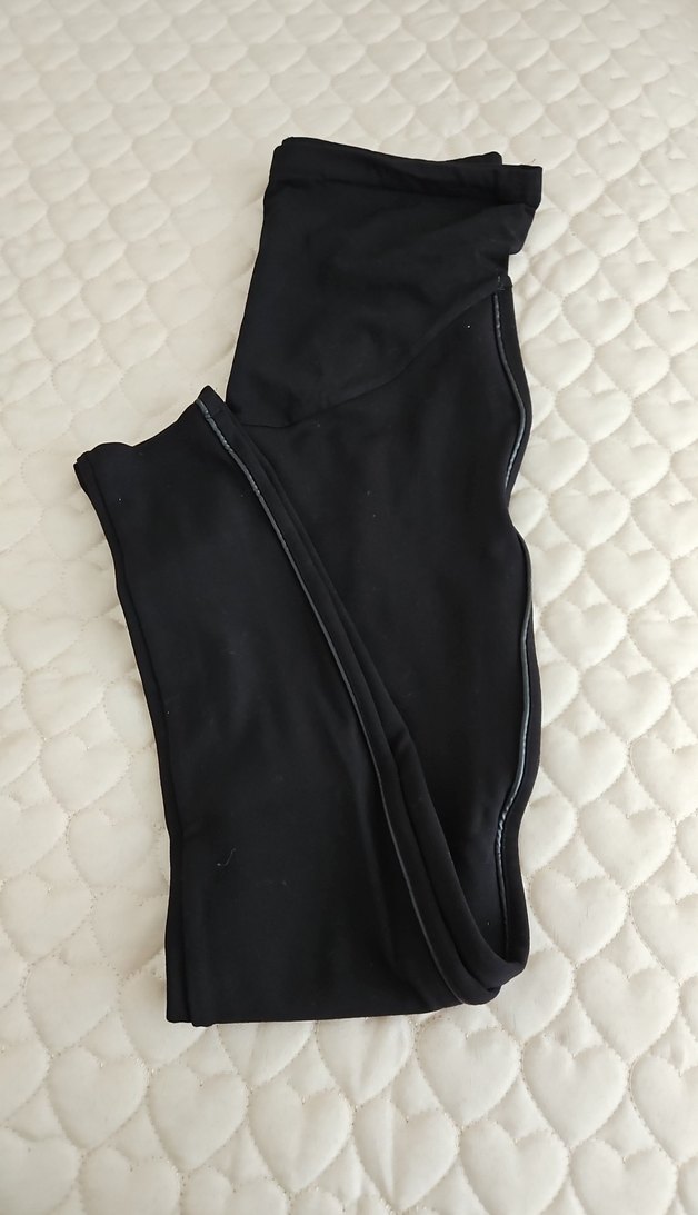 Siyah, elastik sentetik kumaştan yapılmış, midi boy ve gotik tarzda, günlük kullanıma uygun kadın hamile taytı. bir kez giyildi