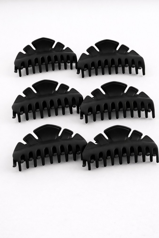 Altı adet siyah plastikten yapılmış, elastik özellikli, gotik tarzda sade kadın saç tokası seti. Saçları sabitlemek için koyu ve sade bir görünüm sunar.