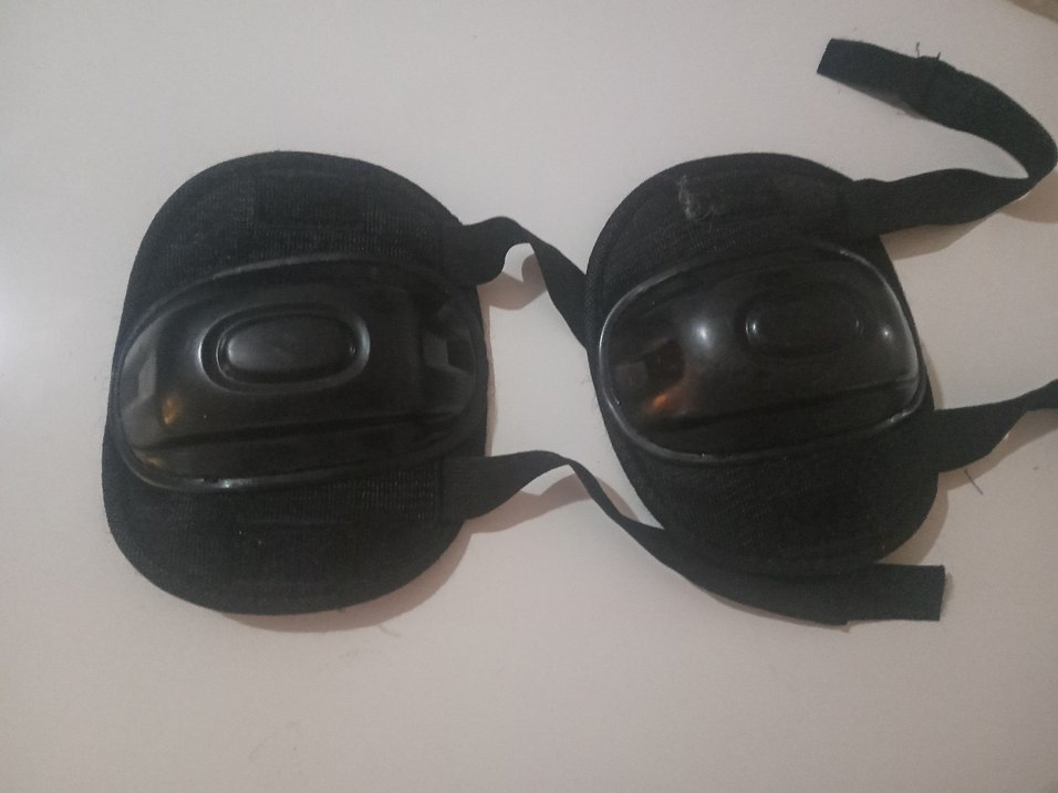 Elastik bantlı, kauçuk malzemeden yapılmış siyah motosiklet dizlik, gotik stile uygun sade tasarım.