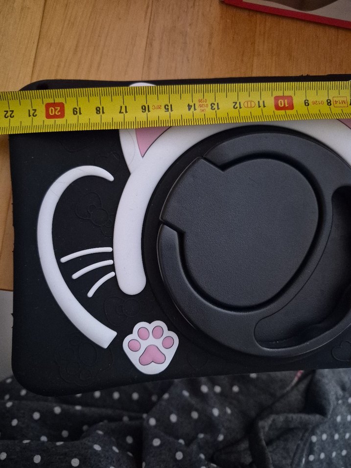 #Tablet kılıfı Elastik malzemeden yapılmış, kedi desenli siyah telefon kılıfı. Rahat tutuş için halka tutucu içerir.
