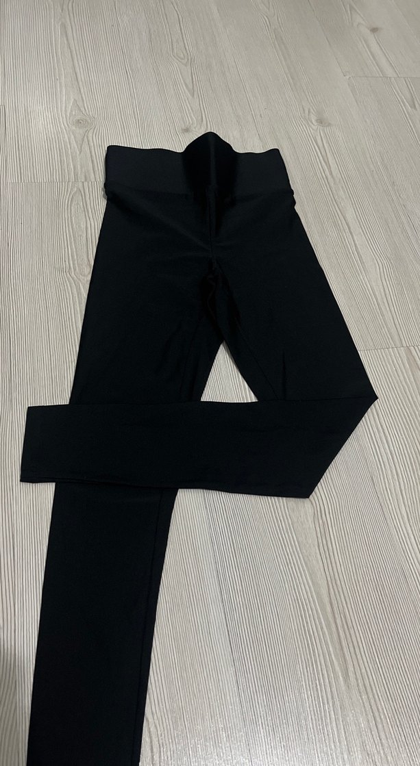 Siyah elastik beli olan, sentetik kumaştan yapılmış, düz ve desen içermeyen kadınlar için spor tayt. Spor ve sokak giyimine uygundur.