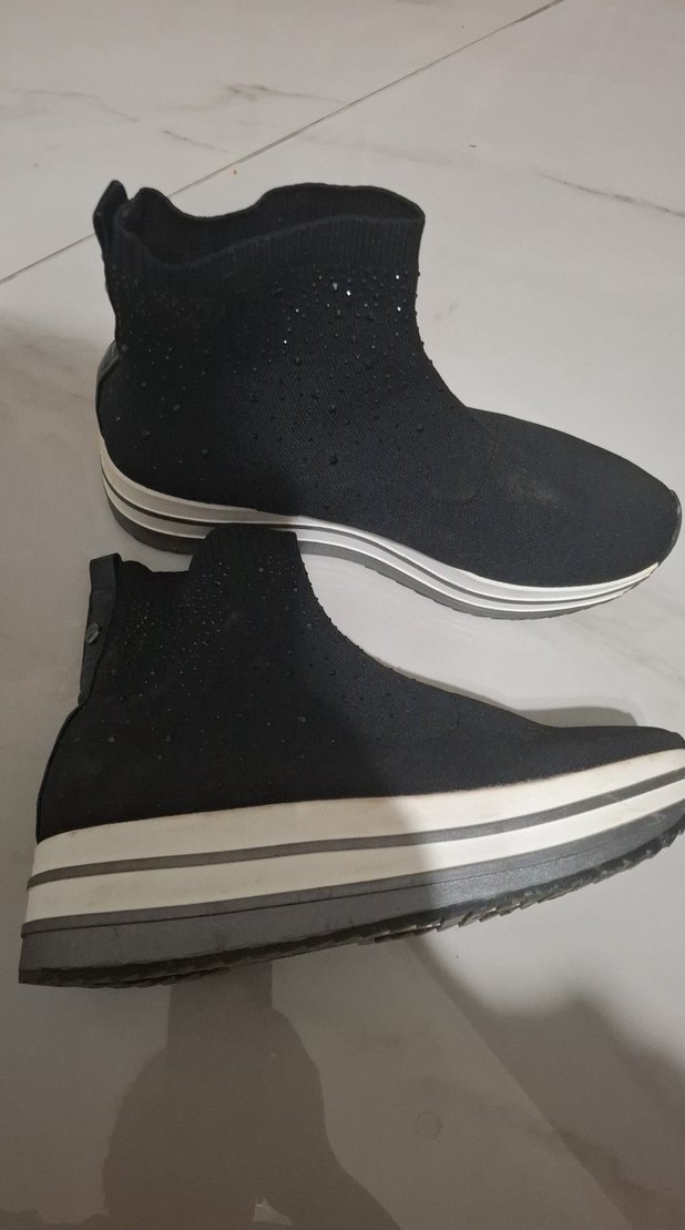 Siyah Elastik Platform Topuklu Spor Ayakkabı