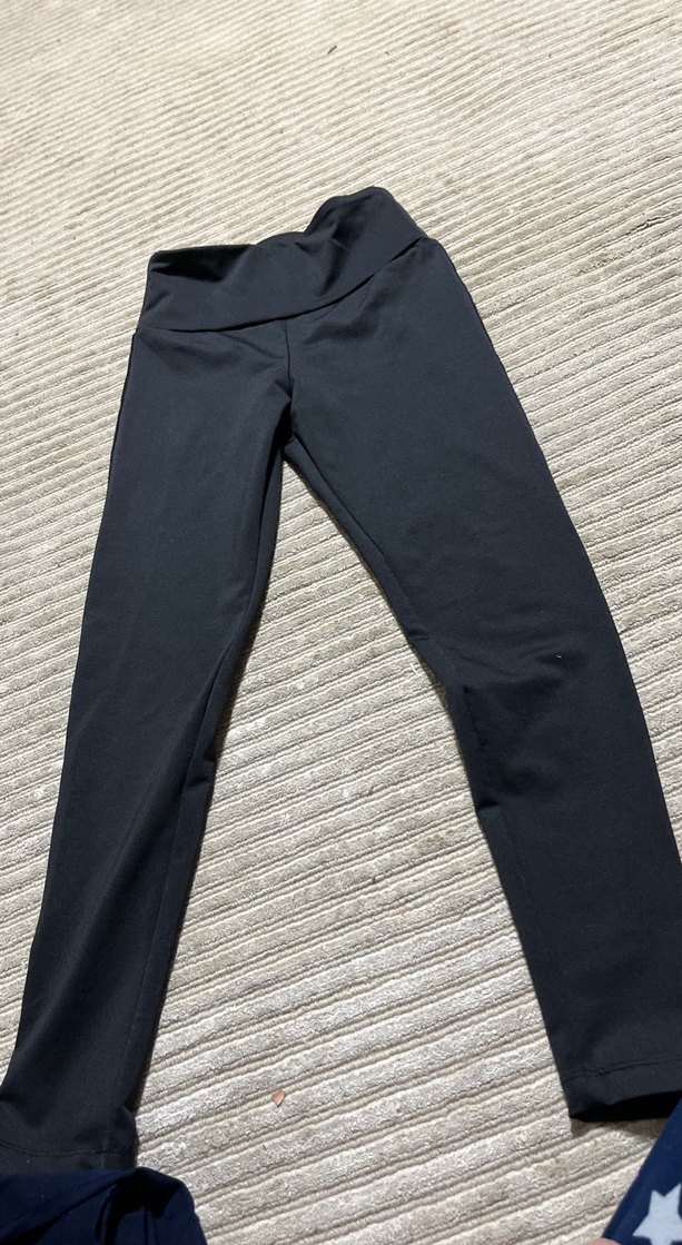 Siyah, elastik bel bantlı, midi boyda, spor ve günlük kullanıma uygun sentetik kumaştan yapılmış kadın tayt.