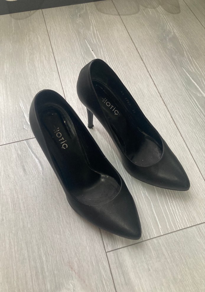 Siyah elastik detaylı, kauçuk malzemeden yapılmış stiletto topuklu ayakkabılar. Minimalist, desensiz ve klasik zarif goth tarzına uygun, ofis için ideal.