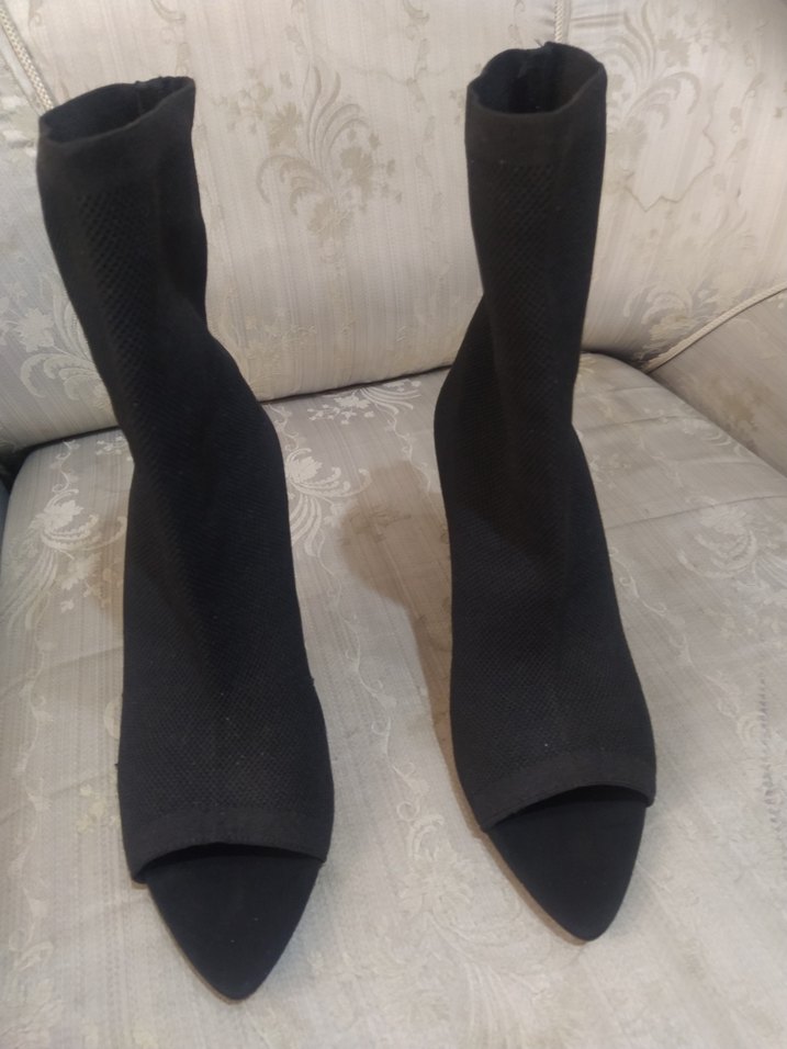 Siyah Elastik Topuklu Stiletto Kadın Bot