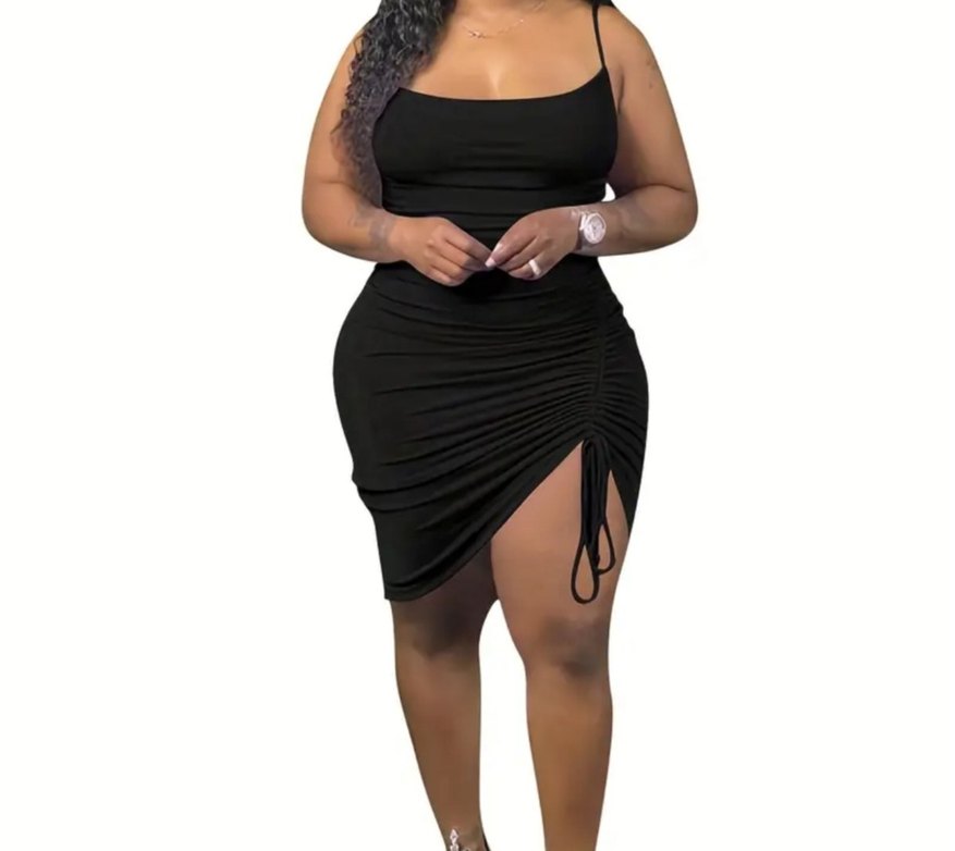 Siyah, dar kesim mini elbise ince askılar ve yan büzgülü drapeli detaylarla parti için cesur ve göz alıcı bir tarz sunar. ✨ Hiç giyilmedi etiket yok sadece