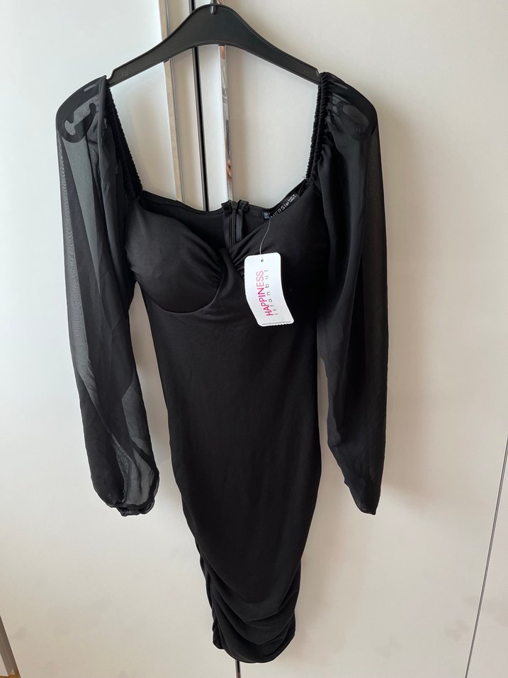 Siyah elbise kolları tül detaylı arkasında fermuar mevcut s beden etiketi üzerinde marka temsilidir
