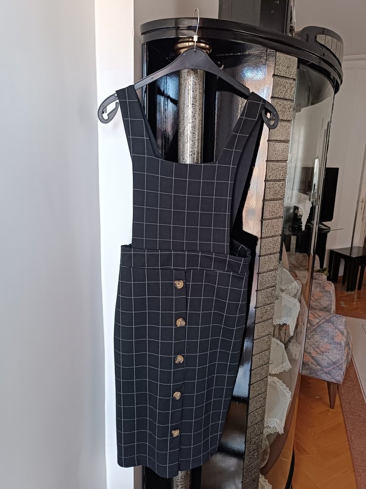 Kareli desenli ön cep ve düğme detaylarına sahiptir.