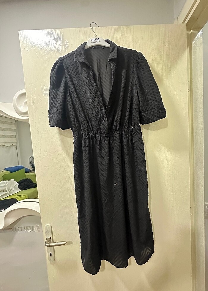 V yaka siyah beli lastikli yazlık elbise hiç kullanılmadı