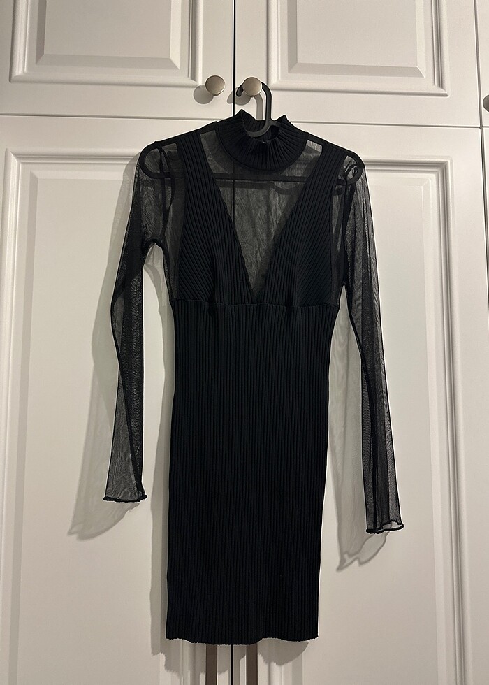 Siyah tül detaylı zara elbise Fazla dekoltelı geldi o yüzden hic giyemedim