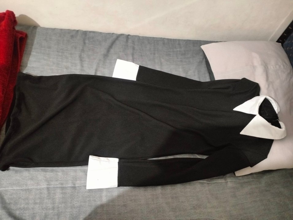 Uzun siyah, diz kapağı hizasında likralı Gömlek detay elbise