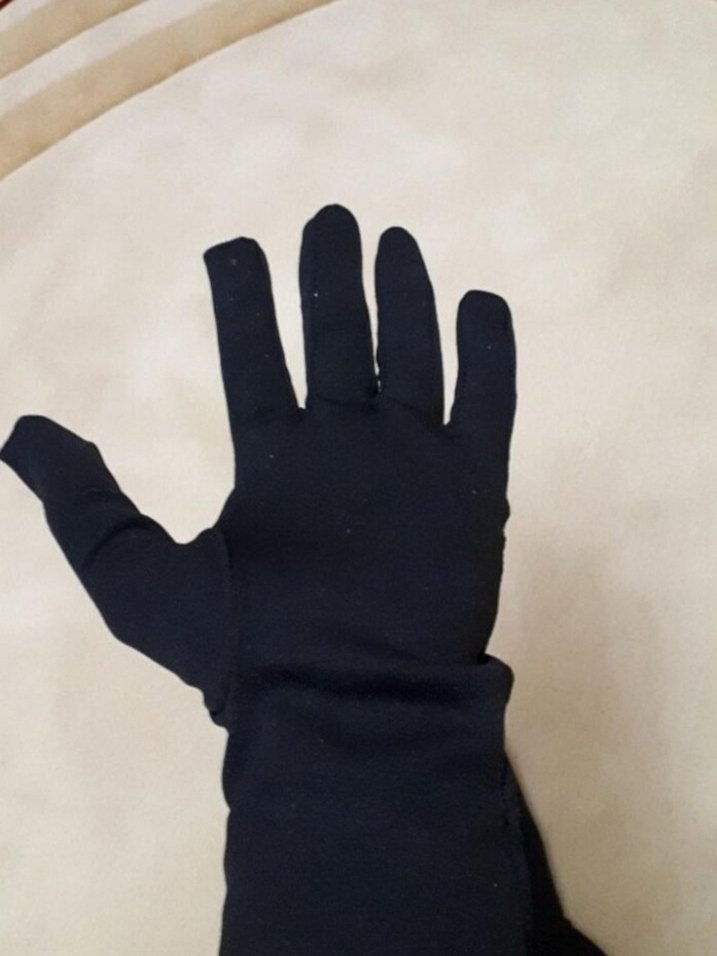 Siyah Eldiven. Hiç kullanılmadı. Triko tarzı değil. Kumaşı ipeksi gibi...