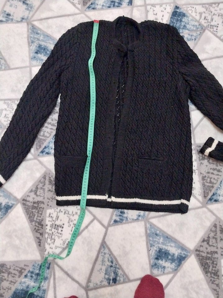 siyah iki cepli, notched lapel yakaya ve uzun kollara sahiptir. Normal boyda ve regular fit olup rahat sokak stili için uygundur. annelere hediye almaya veya çeyizlik harika bir el örgüsü