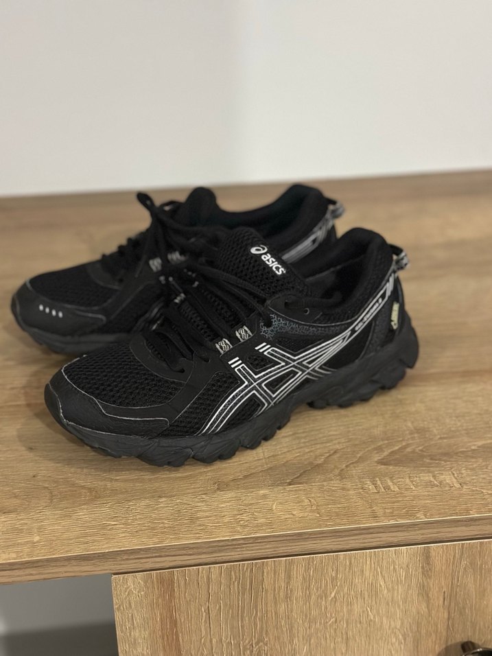 Siyah erkek Asics spor ayakkabılar, kauçuk tabanlı su geçirmez ayakkabı gore-tex özellikli unisex için uygundur