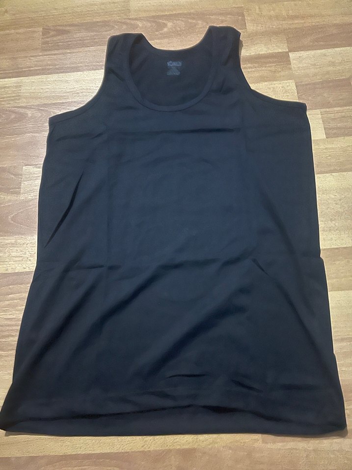 Siyah renkte, fit kesim erkek atlet. Normal boyda ve desensiz, athleisure tarzına uygun.