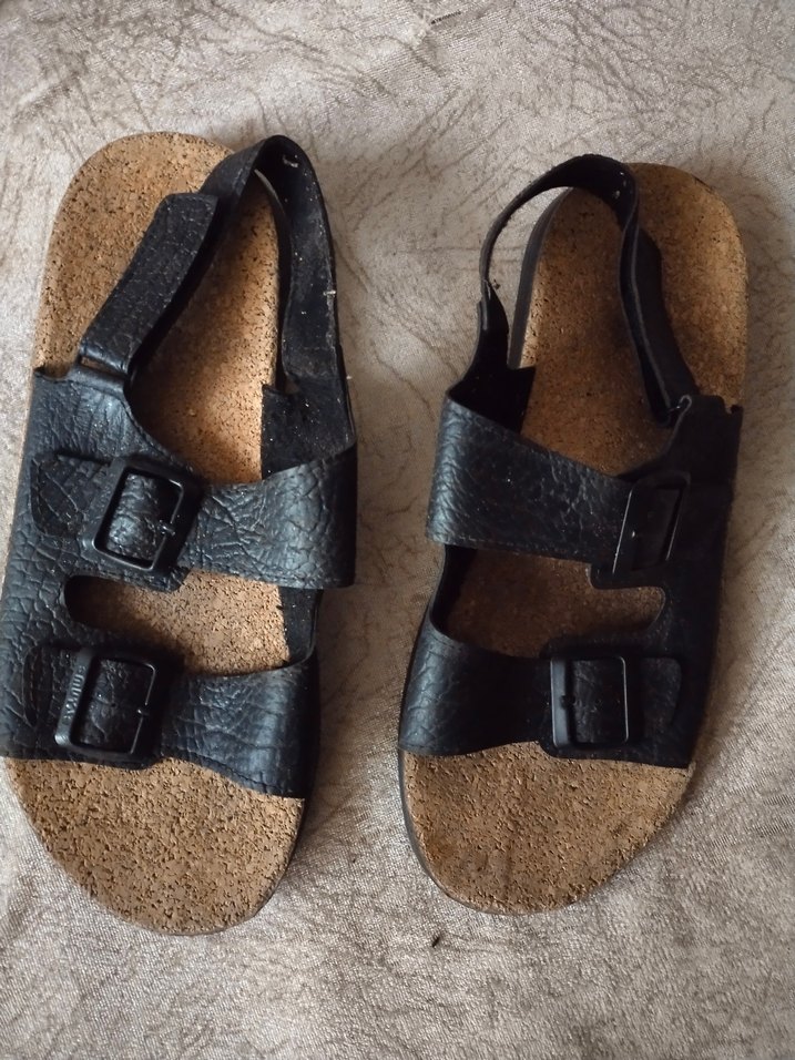 İki ayarlanabilir tokalı arka cırtlı ayarlanabilir terletmeyen mantar tabanlı siyah erkek ayakkabı sandalet rahat tabanlı ve sokak stili için uygun.