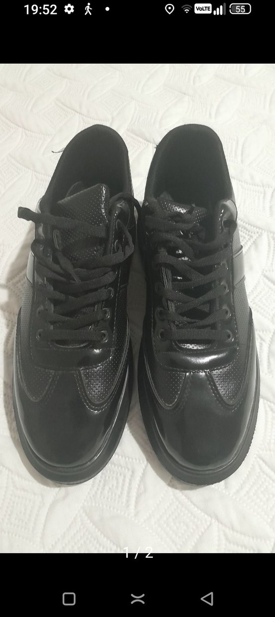 Siyah renkte, bağcıklı ve desensiz yüzeye sahip erkek spor ayakkabıları. Kauçuk malzemeden üretilmiş, günlük kullanıma uygun, goth ve sokak stiline uygun rahat tasarım.