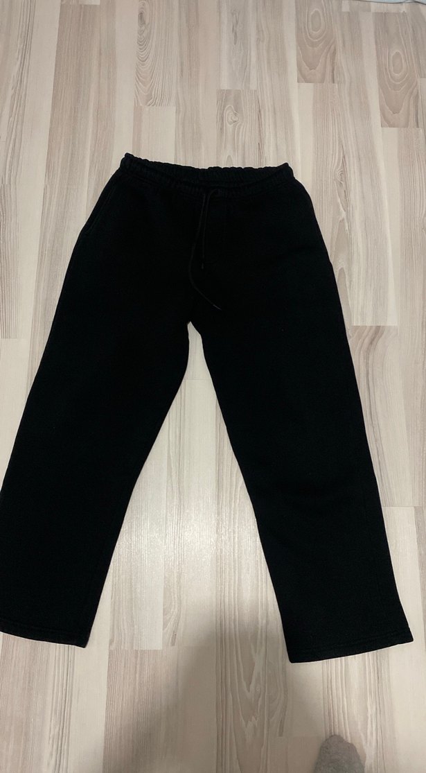 Siyah, regular fit ve normal boyda erkeksweatpants, yumuşak ve sıcak kumaştan. Trendy günlük kombinler için uygundur.