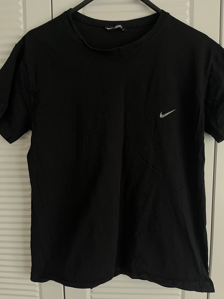Siyah, kısa kollu, yuvarlak yaka ve bol kesim erkek tişörtü. İpeksi dokusu ve minimal tasarımı günlük sokak stili için uygundur. Nike logosu bulunur.