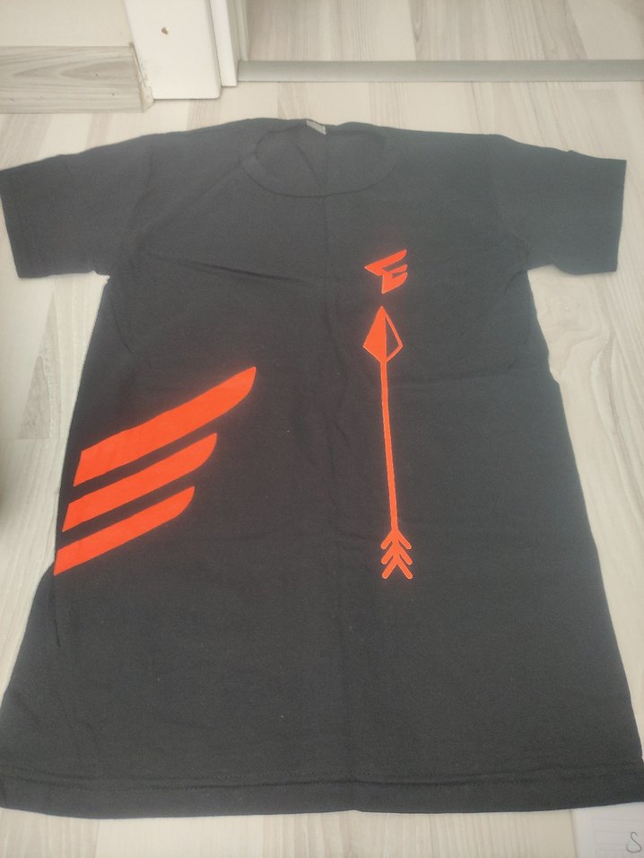 Siyah renkli, baskılı kısa kollu erkek tişörtü, yuvarlak yaka ve bol kesimlidir. Yumuşak sentetik kumaştan yapılmıştır, günlük kullanıma uygundur.