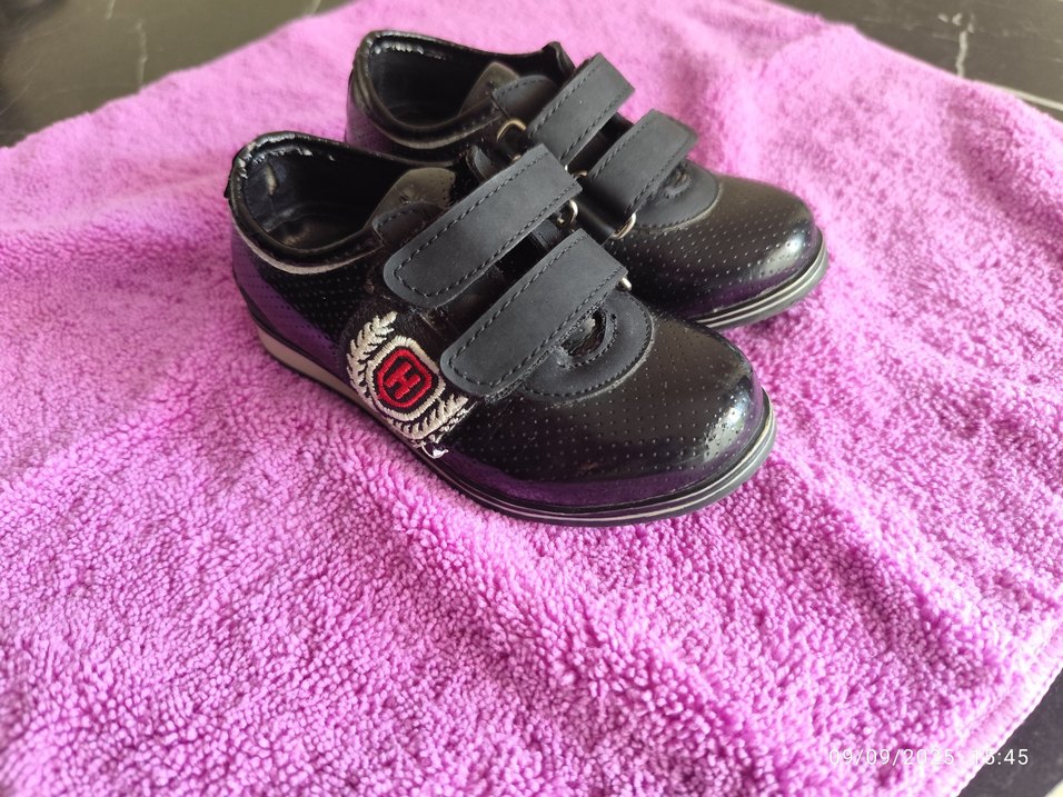 Siyah renkli, nakış detaylı erkek çocuk özel gün ayakkabısı. kolay giyilen cırt cırtlı bantlara sahip. 22 numara