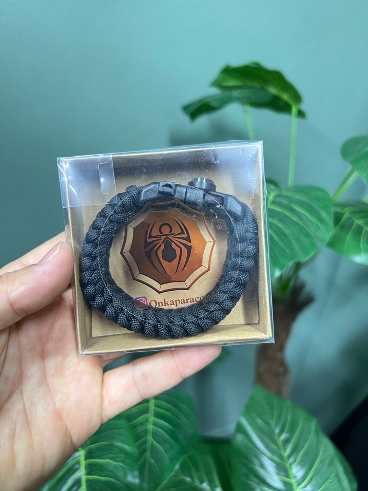 Siyah renkli, örgü tasarımlı erkek biker bileklik, sağlam toka ile rock ve gotik tarzlara uygun. Ambalajda 'Onkaparac' markası yer alıyor. ️