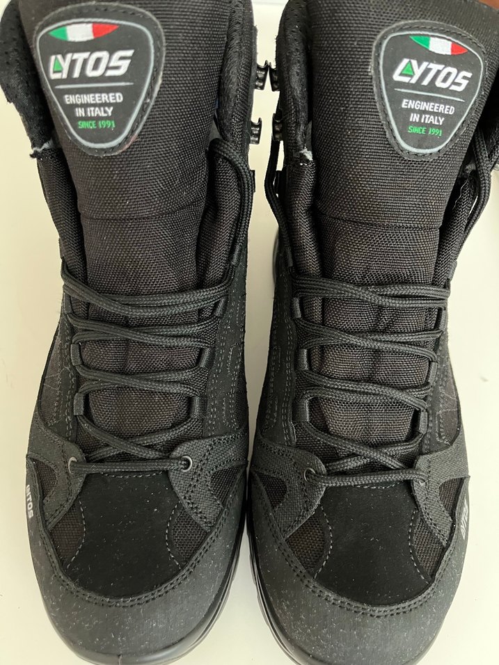 Siyah renkli, kauçuk malzemeden üretilmiş erkek biker botları. Velcro bant ve bağcık detaylarına sahip, rock punk tarzında, dış mekan kullanımı için uygun.