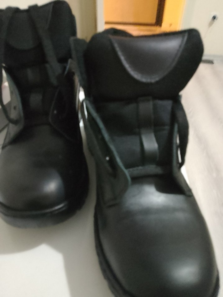 Siyah renkte, tokalı, lastik malzemeden yapılmış erkek biker botları. Desensiz, minimalist ve sade tasarıma sahip, günlük kullanıma uygun. 43 numara hiç giyilmedı sıfır